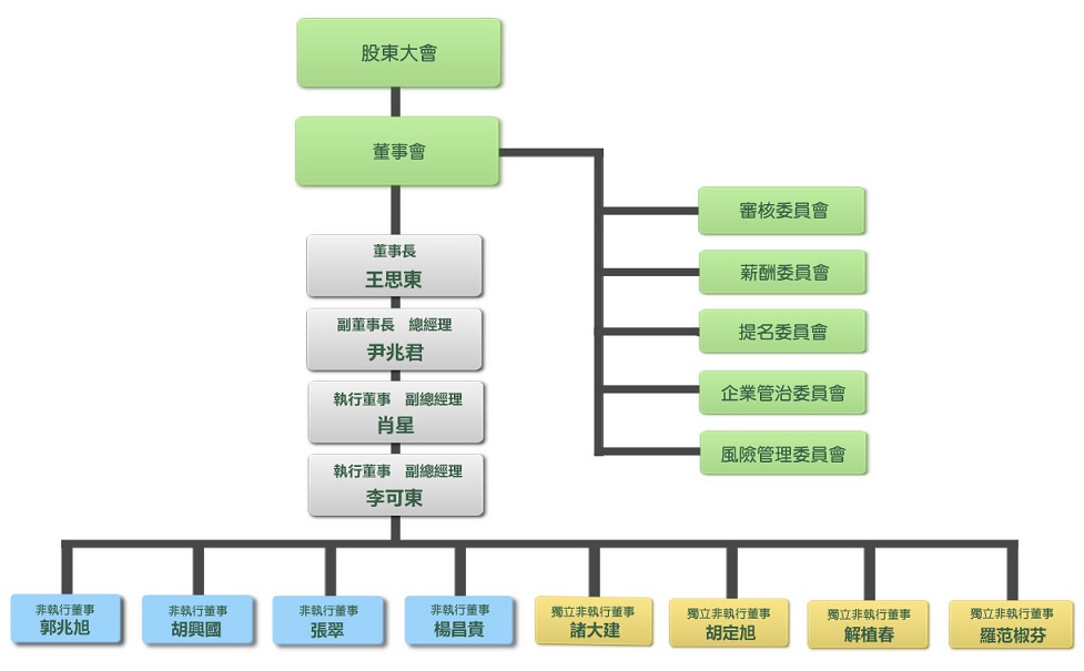 董事會設立5個委員會。下表提供各董事會成員在這些委員會所擔任的職位: